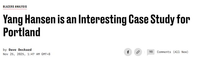 或许我们真正该担心的,不是杨瀚森会如何、何时成长,而是为什么他的成长会承载如此多的期望。如果开拓者队正在冲击NBA总决赛,瀚森或许会被视为一场精彩的豪赌,他的进步会成为大家好奇和喜悦的来源。但如今人们已经开始为他焦虑,这恰恰反映了开拓者队当前的处境——或者更准确地说,反映了他们距离目标还有多么遥远。